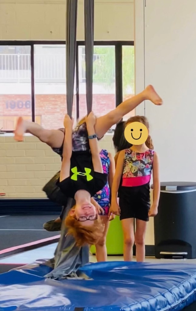 Barre classes proved to be the secret ingredient, as they strengthened her core to the point where she could hold herself up comfortably while balanced in the silk fabric. Bethany soon found herself an aerial yoga studio, and has been taking classes ever since, attending once a week. She notes that her teacher, Nairi, is “amazing” and gives a grateful shout out to everyone at Flying Up Yoga in Studio City.