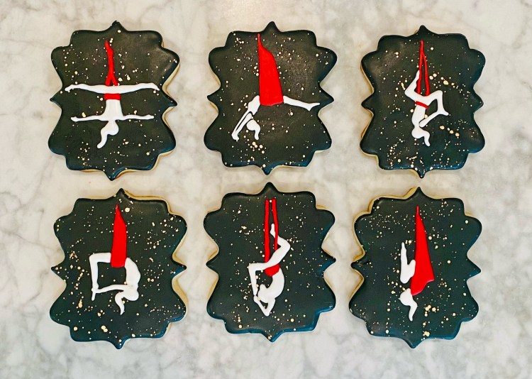 When Bethany isn’t studying aerial yoga or working, she’s busy baking cookies! Her deft hand with royal icing has given her a side hustle, one in which she celebrates her physical prowess by illustrating various poses on cookies. How’s this for a celebration of mind and body?!